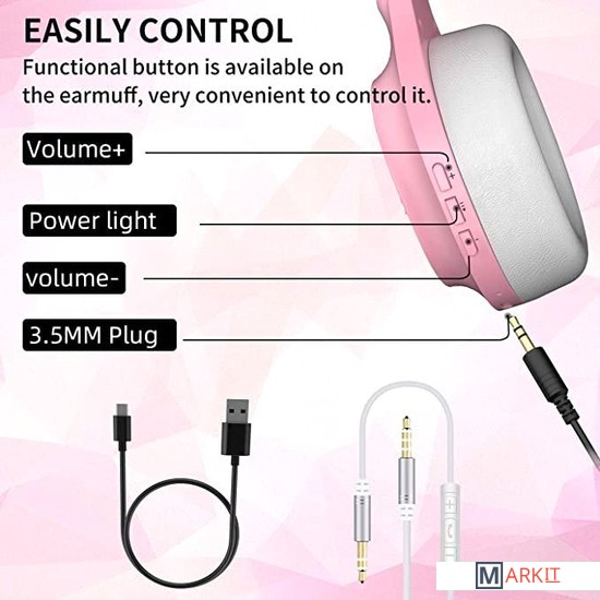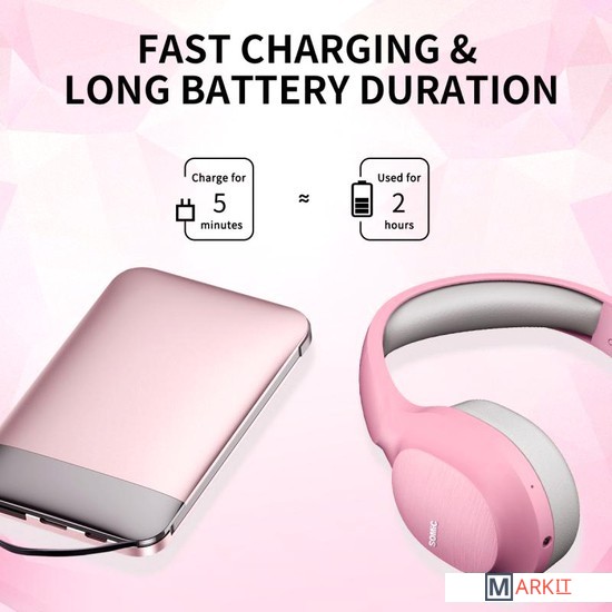 Беспроводные наушники с микрофоном SOMIC MS300 - гарнитура розового цвета со съёмными кошачьими ушками. Эта модель имеет стильный и красивый внешний вид, который очень популярен среди игроков женского пола. Крутой уникальный дизайн и красивая форма раковины являются отличительной чертой наушников SOMIC от других гарнитур. Bluetooth 5.0 обеспечивает длительную стабильную связь и позволяет наслаждаться музыкой в любых обстоятельствах. Микрофон с активной функцией шумоподавления дает возможность четко услышать ваш голос в шумной среде города. Также имеется переходник 3.5 мм. Большие чашки наушников из мягкого материала гарантируют ощущение комфорта и имеют "функцию памяти". С помощью кнопочного управления в корпусе наушников вы не пропустите самое важное. Больше не придется доставать смартфон каждый раз, если хочется переключить трек или сделать музыку громче. 5 минут зарядки равняется 2-ум часам работы наушников. А при полном заряде возможно активное использование гарнитуры 72 часа