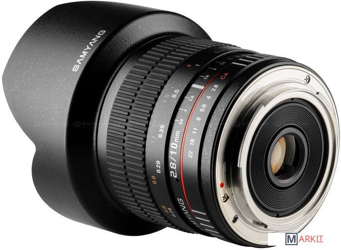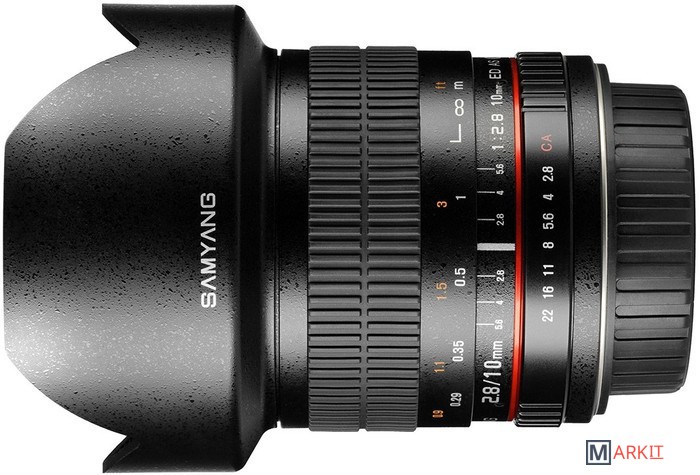 Samyang 10mm 1:2.8 ED AS NCS CS производится для кроп матриц. Очень хороший объектив как для съемки внутри помещений, так и съемки архитектуры и ландшафта. Такие преимущества обеспечиваются широким углом поля зрения до 109,5 градусов и прямолинейной функцией отображения изображения. Благодаря высокой скорости f/2.8 с объективом можно эффективно работать в условиях низкой освещенности, в спортивной фотографии и фотожурналистике. Оптическая конструкция состоит из 14 элементов, разделенных на 10 групп, в том числе 2 асферические линзы и одну линзу, выполненную из сверхнизкодисперсионного стекла.