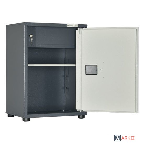 Шкаф для офиса односекционный ШМ-62 ТМ2Э предназначен для хранения документации в папках "Корона" - формат "А4".. Толщина корпуса и двери шкафа 1 мм. Шкаф односекционный, оснащен съемной полкой и трейзером. В двери установлен электронный кодовый замок серии ЕА.
