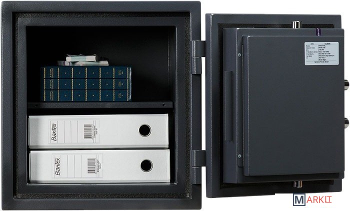 предназначены для сохранности документов и ценностей при пожаре и взломепри заливке двери и корпуса сейфа используется запатентованный состав огнестойкого бетонав конструкции используется тепловой замок, препятствующий прохождению огняпериметр дверного проема оборудован огнестойким уплотнителем3-х сторонняя ригельная система запираниязащита замка и ригелей от высверливания и выбиваниясистема блокировки ригельного механизма при выбивании замка