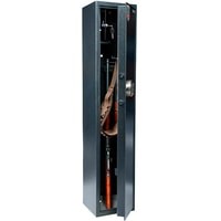 Количество стволов: 2;толщина металла корпуса – 3 мм; толщина металла двери – 5 мм;3-х сторонняя ригельная система запирания (диаметр ригеля 18 мм);оборудованы патронным отделением (трейзер), запирающимся на ключ (соответствующий 3 классу по ГОСТ Р 5089-2003 или замок не ниже класса А по ГОСТ 51053-2012), полками и ложементами для ружей, ковриком;комплектуются кодовым электронным замком PS 310/E31 (Промет);наличие анкерных отверстий для крепления сейфа к полу и стене;максимальная высота ружья 1283 мм;конструкция патронного отделения позволяет размещать оружие, задействуя всю высоту сейфа.