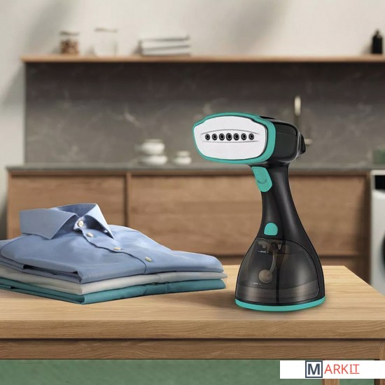 Ручной отпариватель Kitfort КТ-9121 обладает такими достоинствами, как мощный поток горячего пара, компактность и лёгкий вес. Он быстро прогладит и продезинфицирует вещи практически в любом месте без раскладывания гладильной доски.Поверхность утюжка подогревается до 100-120°С и имеет металлическое покрытие, поэтому прибор можно использовать в режиме сухой глажки. Он оснащён помпой, что позволяет точно дозировать количество подаваемой в бойлер воды и получать устойчивую подачу пара.Для подачи пара необходимо нажать на нижнюю часть кнопки и удерживать её. Чтобы зафиксировать кнопку в нажатом состоянии, нужно сдвинуть фиксатор – устройство будет непрерывно подавать пар. Подсветка индикатора указывает на текущий процесс нагрева.Шерсть домашних животных прилипает к одежде из-за статического электричества, и её довольно проблематично очистить. Пар снимает у шерсти электрический заряд, и она легко счищается ворсовой насадкой.Резервуар для воды ёмкостью 300 мл съёмный и с широким отверстием, поэтому он легко наполняется водой и устанавливается в корпус прибора. Отверстие защищено прорезиненной крышкой, чтобы вода не вытекла при работе отпаривателя.