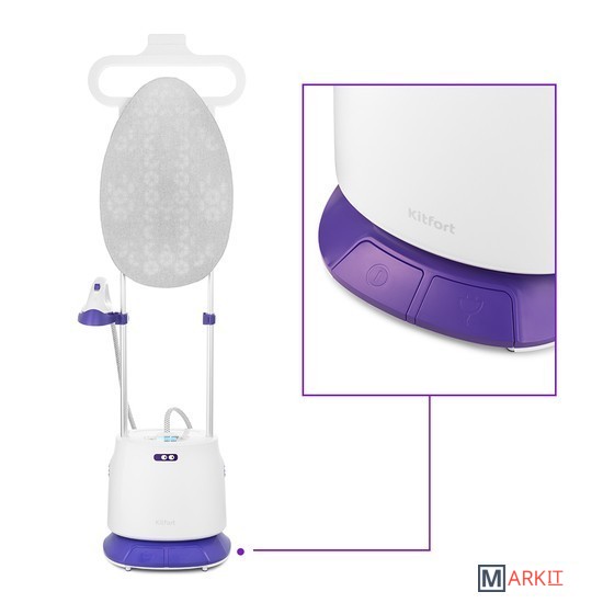 Отпариватель Kitfort КТ-996 позволяет быстро прогладить любые вещи и изделия из текстиля даже со сложной текстурой, которые обычно не гладят. Кроме глажки и отпаривания он обрабатывает вещи мощной струёй горячего пара, проводя чистку и дезинфекцию.Вещи можно вешать на плечики, на обычную вешалку, подвешенную к отпаривателю, или разложить их на гладильной доске. Она сделана из материала, который пропускает пар и может быть установлена горизонтально или вертикально. Утюжок ставится на держатель.КТ-996 имеет подогреватель пара в утюжке, который предотвращает образование конденсата на выходе пара и дополнительно подогревает его до 100-130°С. Таким образом, вы можете отпаривать на горизонтальных поверхностях, а также проводить сухую глажку.В устройстве предусмотрено 5 уровней подачи пара, каждый из которых подходит для определённого типа ткани. Настроить необходимый режим можно с помощью удобных кнопок на корпусе отпаривателя. Выбранный режим отображается на LED-дисплее.Ёмкость съёмного резервуара составляет 1,6 л. Такого объёма хватит минимум на 35 минут беспрерывного отпаривания. Время нагрева составит не более 1 минуты.Корпус отпаривателя имеет напольное исполнение и оснащён компактными колёсами для удобного перемещения. На нижней части корпуса расположены педаль смотки шнура, нажатие на которую позволяет автоматически смотать шнур, и педаль вкл/выкл.С нашей техникой очень легко подружиться, потому что она не только лёгкая и функциональная, но и будто живая с весёлыми глазами. Никого не оставит равнодушным! В любой момент вы можете отклеить этот стикер без вреда для поверхности.