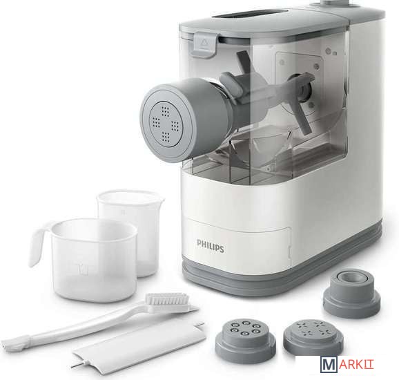 Быстрое приготовление свежей пасты по вашему вкусу. Загрузите ингредиенты, и прибор выполнит всю работу за вас. Паста-машина Philips Viva не только автоматически замешивает тесто и изготавливает пасту и лапшу, но и гарантирует их безупречную текстуру и великолепный вкус. Для изготовления пасты или лапши своего любимого типа просто закрепите одну из насадок на паста-машине. К прибору прилагаются 4 насадки для спагетти, пенне, феттучини и листов для лазаньи. Насадки особого дизайна обеспечивают двойное формирование для приготовления качественной пасты и лапши.