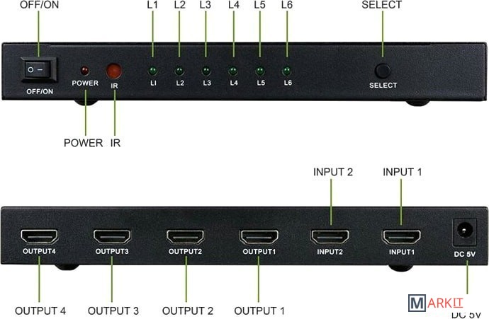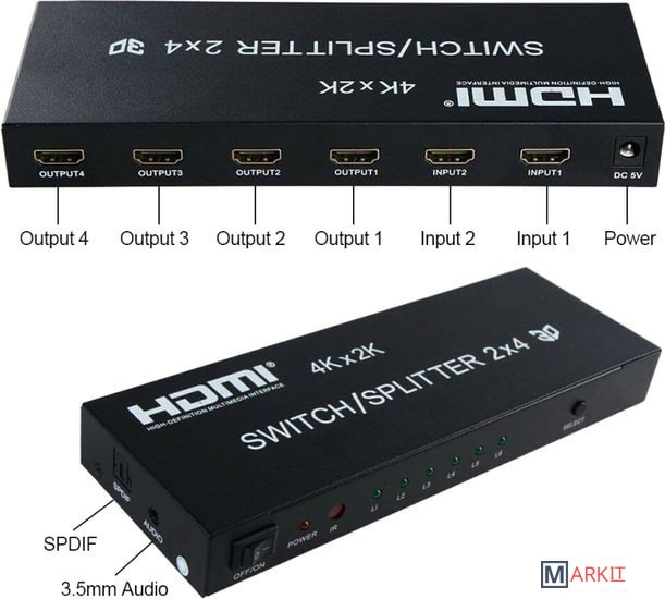 Markit » Кабели, адаптеры, разветвители » Переключатель USBTOP 4Kx2K HDMI Switch/Splitter 2x4 3D