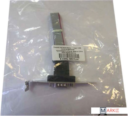 Монтажная низкопрофильная планка (Bracket), предназначена для подключения устройств RS-232(COM порт). Устанавливается на заднюю стенку корпуса персонального компьютера.