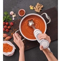 Ручной блендер MultiQuick 5 Vario предлагает 21 легко регулируемую скорость для более точных результатов смешивания. Скорости легко регулируются большим пальцем, а высокоэффективный двигатель мощностью 1000 Вт дает вам мощность, необходимую для быстрой обработки широкого спектра продуктов.Колесо с регулируемой скоростью, которое можно регулировать одной рукой - просто отрегулируйте скорость без перерыва большим пальцем.Увеличенная площадь резки. Смешивает цельные продукты за секунды.Ручка с частичным мягким захватом имеет эргономичную конструкцию, чтобы быть тоньше в верхней части для большего контроля и лучшего использования в любой ситуации приготовления.Предотвращает разбрызгивание - чтобы вы и ваша кухня оставались безупречными.Одноручное колесо скорости разработано для удобного управления большим пальцем. Этой же рукой нажимаешь на кнопку скорости.Детали можно мыть в посудомоечной машине.