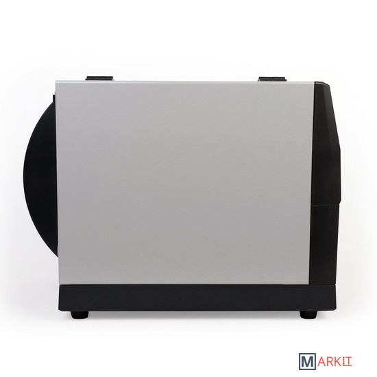 Термотрансферный принтер печатает до 30 000 этикеток за смену. Он может печатать 1D и 2D штрихкоды, включая код маркировки Data Matrix. Устройство поддерживает все популярные протоколы печати и легко подключается к любой операционной системе.В устройство можно загружать синтетические, текстильные и бумажные лентах, а также липкие ярлыки. Процесс печати сопровождается световой и звуковой индикацией. Работу контролирует комплекс датчиков: при любой ошибке система подает оператору сигнал.В основе корпуса находится прочная металлическая рама. Внешние панели сделаны из пластика и поликарбоната. На корпус можно установить отрезчик, отделитель, держатель больших рулонов. Аксессуары оплачиваются отдельно, они не входят в базовый комплект поставки.