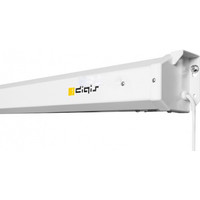 Длина кабеля 5м. Кабель оснащен электрическим переключателем для управления экраном.Мощность электропривода 18 Вт, скорость вращения двигателя 15 об./мин.Корпус экрана шестиугольного сечения выполнен из стали с белым полимерным покрытием. Торцевые заглушки корпуса изготовлены из ударопрочного белого пластика.Нижняя натяжная стальная планка круглого сечения диаметром 13 мм с белым полимерным покрытием.Материалы полотна экрана экологически безопасны, полностью удовлетворяют требованиям пожарной безопасности к строительным материалам и компонентам.