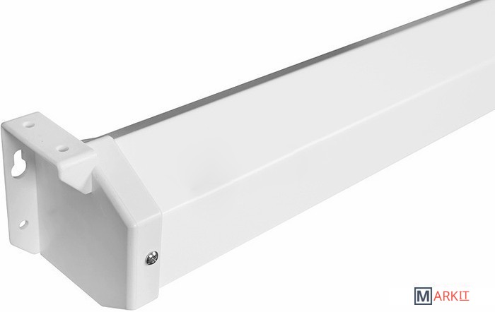 Корпус экрана шестиугольного сечения выполнен из стали с белым полимерным покрытием и ударопрочного пластика.Нижняя натяжная стальная планка круглого сечения диаметром 20 мм с белым полимерным покрытием.Материалы полотна экрана экологически безопасны, полностью удовлетворяют требованиям пожарной безопасности к строительным материалам и компонентам.