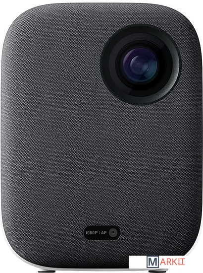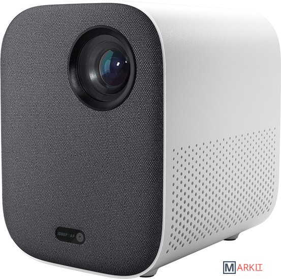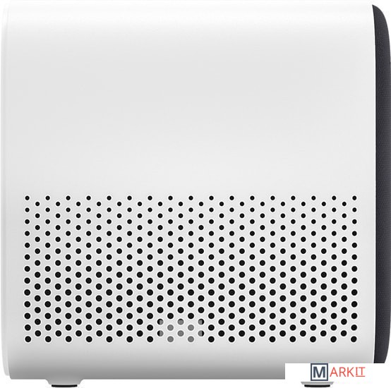 Компактный проектор для домашнего кинотеатра со встроенной системой Android (фирменная оболочка Mi TV). В комплекте пульт с голосовым управлением. На нижней грани есть крепление для штатива. С помощью Bluetooth в проектору можно подключить смартфон для вывода звука или геймпад для игр.