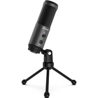 Этот микрофон можно смело использовать всюду - в игровых баталиях, рабочих встречах, записи подкастов и на стримах. Благодаря сенсорной кнопке с технологией "tap-to mute" на микрофоне можно моментально отключить звук легким прикосновением. Индикатор звука покажет, находитесь ли вы в прямом эфире. Встроенная звуковая карта позволяет подключить наушники прямо к микрофону и контролировать ход записи, не загружая компьютер или рекордер. Эталонная частота 48 кГц, с битрейтом 16 бит - это оптимальный формат звука. Микрофон относится к конденсаторному типу кардиоидной направленности, что обеспечивает чистое звучание голоса с подавлением внешних звуков и шумов. Гаджет отличается оптимальной чувствительностью - примерно -40 дБ, а также широким диапазоном рабочих частот - от 50 Гц до 18 кГц. Управление интуитивно понятно - регулировка громкости и качества звука, уровня выходного сигнала, а также мгновенное отключение звука. Стойка микрофона устойчива, и позволяет быстро установить микрофон под нужным углом и вращается на 360°. Для подключения используется полностью съёмный USB Type-C кабель длиной 2 м со штекерами на двух концах. Гаджет не требует дополнительного ПО или специальных скиллов - просто подключите микрофон к USB-входу компьютера и общайся с тиммейтами.