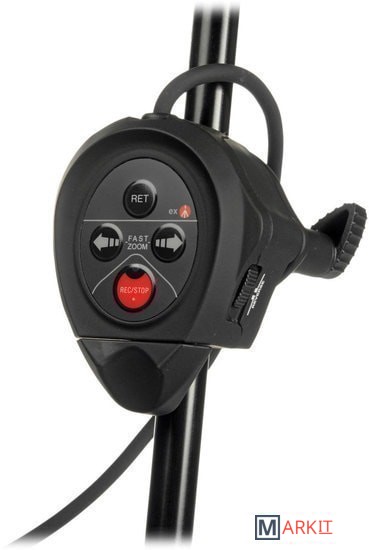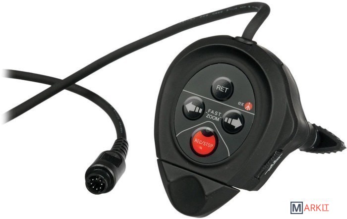 Джойстик дистанционного управления, совместимый с камерами Sony PMW семейства EX. — Кнопка REC/STOP — Переключатель Zoom — Ручка Multi-speed Zoom — Zoom потенциометр на максимальной скорости — Кнопка RET (воспроизведение последних 5 секунд записи) — Светодиодный индикатор Rec — Кнопки Fast zoom.