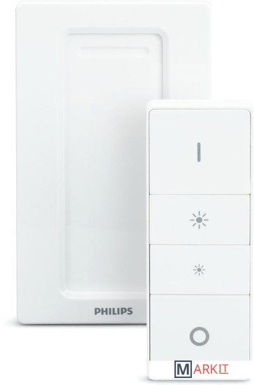 Управляйте и приглушайте свет с помощью пульта дистанционного управления Hue. Настенный выключатель и пульт дистанционного управления — этот интеллектуальный выключатель можно легко прикрепить к стене с помощью прилагаемой липкой ленты и может быть снят с магнитного основания для использования в качестве пульта дистанционного управления.Умный пульт дистанционного управления Hue позволяет переключаться между четырьмя световыми режимами нажатием одной кнопки "Включить". Световые режимы отдыха, чтения, концентрации и активности запрограммированы по умолчанию, а переключение между ними осуществляется в приложении Hue.Philips Hue Dimmer switch позволяет удаленно изменять яркость освещения.Пульт Philips Hue работает как обычный настенный выключатель и диммер, но лучше. Помимо возможности монтажа с помощью винтов или липкой ленты, диммер также можно снять с магнитного держателя и использовать в любой комнате как пульт дистанционного управления.Используя комплект с беспроводным пультом Philips Hue для умных ламп, можно подключить до 10 источников света и управлять ими одновременно с помощью одного диммера.Пульт оснащен магнитным креплением и его можно снять с установочной пластины. Это позволяет использовать его для дистанционного управления.