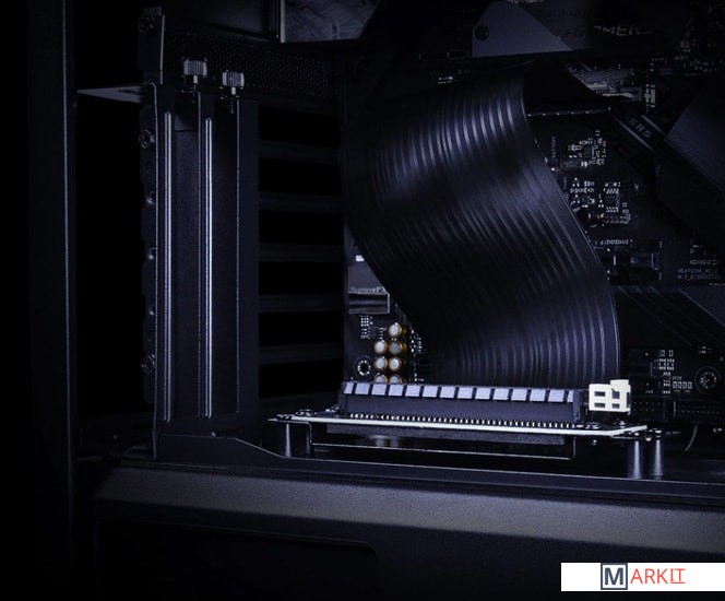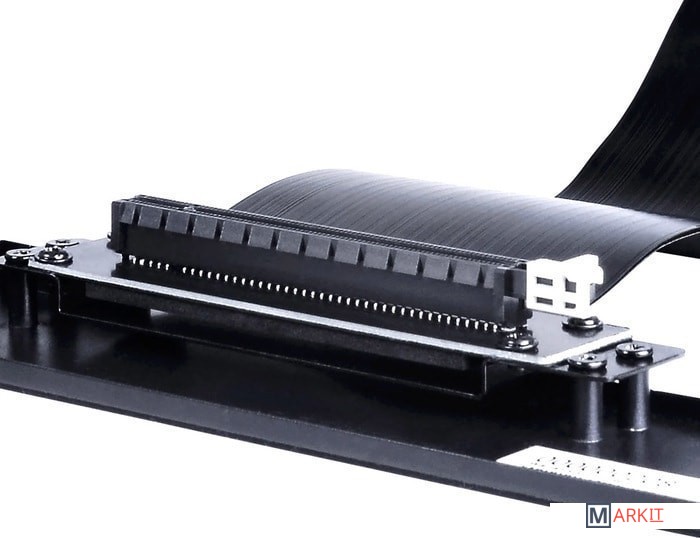 Райзер-кабель с металлическим держателем предназначенный для вертикального монтажа видеокарт.