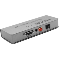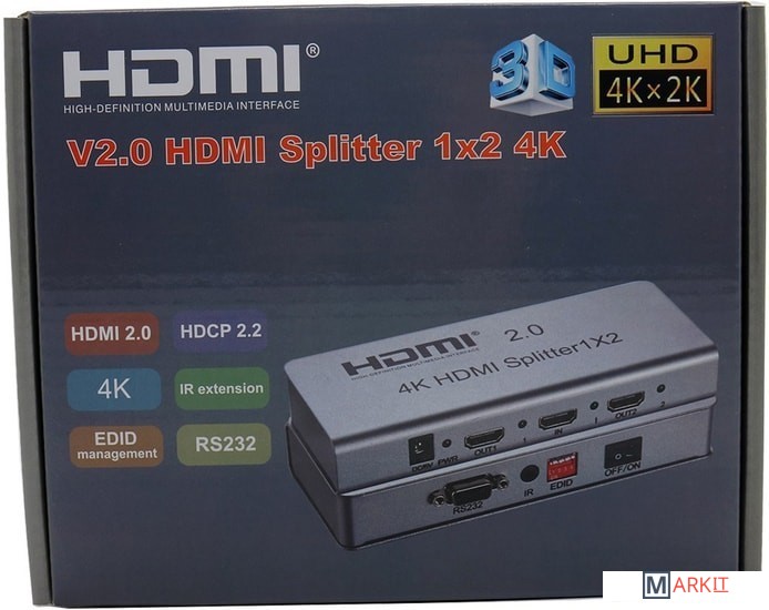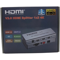 Обеспечивает передачу видеосигнала сверхвысокого разрешения ULTRA HD 4K/60Hz (3840x2160), поддерживает передачу 3D-видео. Позволяет подключить к одному источнику цифрового видео/аудио сигнала (медиаплееру, TV ресиверу и др.) одновременно два телевизора или проектора стандарта UHDTV.
