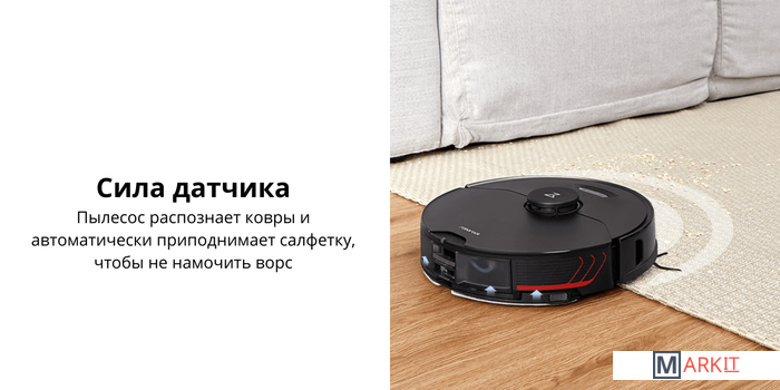 Новое конструктивное решение позволяет роботу-пылесосу поднимать салфетку при заезде на ковры, чтобы робот мог одновременно пылесосить и мыть пол, при этом не мочить ковры.Благодаря ультразвуковому приводу моющая площадка с салфеткой вибрирует.В комплекте идет база самоочистки, оснащенная 3 емкостями: для грязной воды, для чистой воды и для сухого мусора.