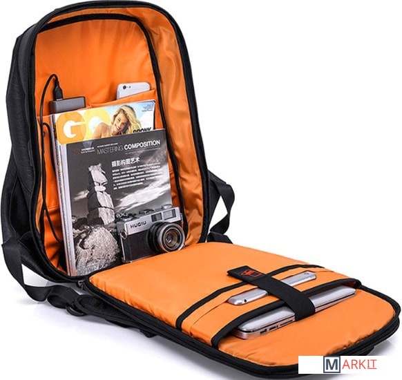 Главной особенностью данного рюкзака является наличие внешнего USB-порта для зарядки электронных устройств. Изготовлен из влагонепроницаемого материала.
