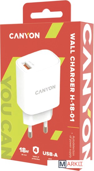 Markit » Зарядные устройства » Сетевое зарядное Canyon CNE-CHA18W
