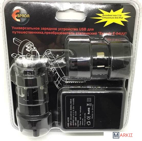 Markit » Зарядные устройства » Сетевое зарядное Espada E-04UU (черный)