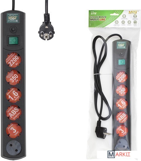 Markit » Стабилизаторы, сетевые фильтры, удлинители » Сетевой фильтр Most LRG 1.6 м (черный)