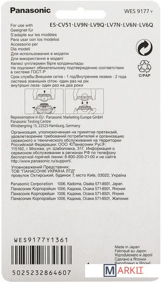 | Совместимость | Panasonic ES-CV51, LV9N, LV9Q, LV7N, LV6N, LV6Q |