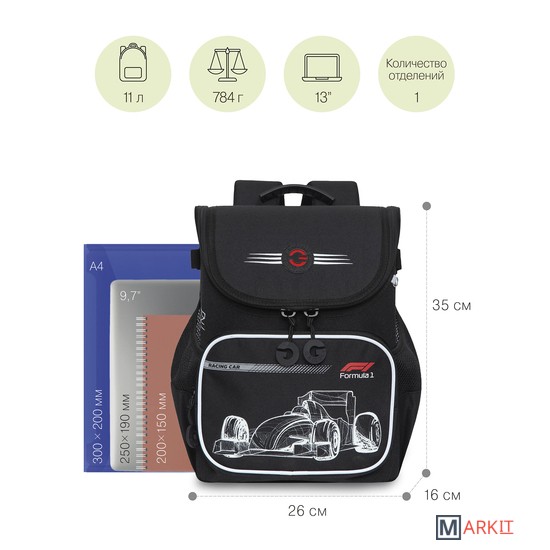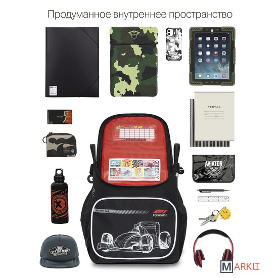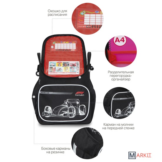 Что самое главное при выборе ранца? Конечно жесткость конструкции, эргономичная спинка и удобные широкие лямки, которые сохраняют осанку здоровой. Мы разработали легкий ранец GRIZZLY серии RAl для детей школьного возраста с эргономической спинкой. Ранец рассчитан на рост от 120 до 130 см. Жесткая конструкция, эргономичная спинка, лямки анатомической формы и нагрудная стяжка со свистком равномерно распределяют вес по спине ребенка. Ранец полностью раскладывается. Жесткая конструкция не деформируется при нагрузке и создает надежную защиту содержимого. У ранца одно большое отделение с разделителем для учебных пособий формата А4, передний карман на молнии для мелочей, твердое дно с резиновыми ножками и два вместительных боковых кармана. Со всех сторон есть отражатели — ребенка в темноте точно заметят. За счет водо- и грязеотталкивающей пропитки ранец долго остается как новый. Если он все же чем-то испачкался, мы рекомендуем ручную стирку в холодной воде.