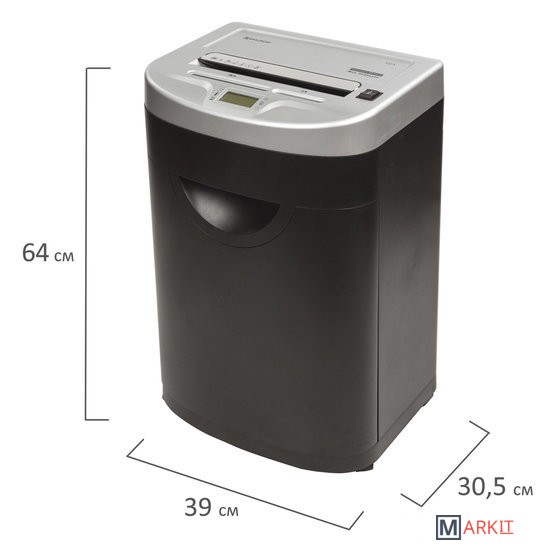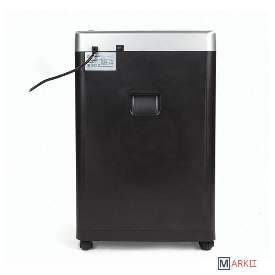 Уничтожитель документов (шредер) BRAUBERG S22 предназначен для уничтожения документов, компакт-дисков и пластиковых карт (банковских, дисконтных и прочих), потерявших актуальность.Отлично подходит для интенсивного персонального использования или коллективного использования в среднем офисе. Резка на полоски размером 4 мм обеспечивает P-2 уровень секретности (DIN 66399). Рекомендуемое количество пользователей — до 10 человек. За один раз уничтожает 22 листа формата А4. Объем корзины составляет 34 л.Дополнительным преимуществом данной модели является наличие функции энергосберегающего режима, т. е. когда аппарат не используется некоторое время — он находится в режиме готовности, но при этом снижается потребление энергии. Аппарат включится автоматически в момент начала уничтожения бумаги/компакт-диска/пластиковой карты.Данный уничтожитель снабжен надежными ножами, способными уничтожать скобы от степлера, что облегчает уничтожение скрепленных документов, экономя время потребителя. Отличительной чертой уничтожителя документов BRAUBERG является низкий уровень шума — всего до 56 Дб, т. е. тише, чем звук, издаваемый электробритвой. Шредер оснащен защитой двигателя от перегрева, что является частой причиной выхода из строя этой дорогостоящей запчасти на уничтожителях бумаги других производителей. Под входом для пластиковых карт/компакт-дисков предусмотрена отдельная небольшая корзина для того, чтобы отходы от карт и дисков не смешивались с отходами от бумаги, уничтожаемой через основной вход. Уничтожитель можно легко перемещать по офису, поскольку он оснащен колесами. При его установке в определенном месте можно зафиксировать передние колеса, чтобы шредер не перемещался.