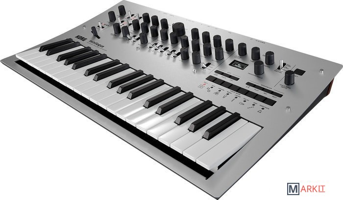 KORG Minilogue - это полностью программируемый, 4-голосный полифонический синтезатор, также оснащённый встроенными эффектами задержки и реверберации. Синтезатор имеет уникальный аналоговый движок, быстрый доступ к 100 заводским 100 пользовательским пресетам, 8 голосовых режимов для создания своей конфигурации из 4 голосов - унисон, полифония и пр. На передней панели расположен 41 регулятор для настройки параметров и быстрого изменения функций, осциллограф в режиме реального времени дающий визуальный контроль звука, 16-шаговый полифонический секвенсер с автоматизацией вплоть до 4 параметров синтезатора и многое другое.
