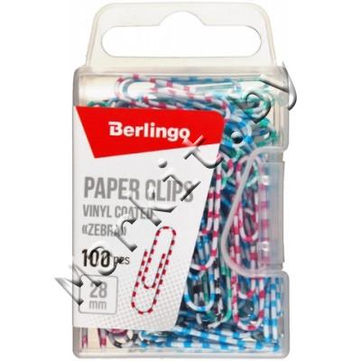 Markit » Канцтовары » Настольные принадлежности » Скрепки, кнопки, зажимы, булавки, резинки для банкнот » Скрепки Berlingo, 28 мм, 100 шт., округлые, виниловое покрытие, «Зебра»