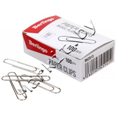 Скрепки Berlingo, 50 мм, 100 шт., округлые, никелированные Код: 33127