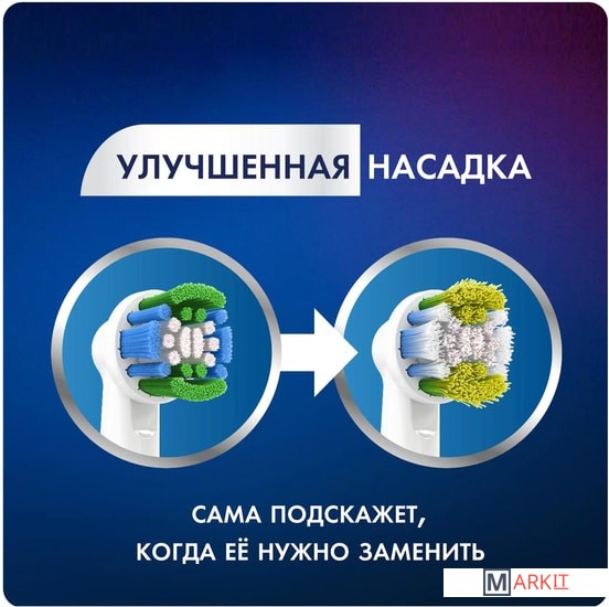 Улучшенные насадки Oral-B Precision Clean оснащены новейшими щетинками CleanMaximiser, которые меняют цвет при необходимости замены насадки, обеспечивая ее свежесть и эффективность для оптимальной чистки.Технология щетинок CleanMaximiser.Стоматологи рекомендуют менять насадку зубной щетки каждые три месяца. Улучшенные сменные насадки Oral-B 3D White оснащены зелеными щетинками CleanMaximiser, которые желтеют, напоминая, что настало время заменить насадку для эффективной чистки.