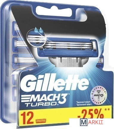 Markit » Бритвенные станки и лезвия » Сменные кассеты для бритья Gillette Mach3 Turbo (12 шт)