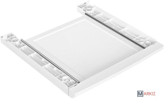 Соединительный элемент с выдвижной полкой для установки стиральной и сушильной машины в колонну.