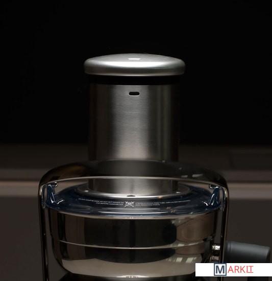 Широкий загрузочный желобСоковыжиматель S703 оснащен желобом диаметром 88 мм, самым широким по сравнению с другими центробежными соковыжимателями BORK. Благодаря такой конструкции можно реже разрезать плоды на части и ускорять процесс отжима сока.Кувшин объемом 2 лВ комплектации предусмотрена емкость для сока объемом 2 л с удобной крышкой. Вы можете отжимать сок сразу в кувшин, а после одним движением изменить положение крышки, плотно закрыв ее для удобного хранения напитка.Мощный двигатель и надёжная система защитыВы сможете готовить сок из плодов разной твердости благодаря двигателю мощностью 1500 Вт и плавной регулировке скорости отжима. Для длительной работы прибор оборудован системой защиты от перегрева.Фильтр с износостойкими ножамиМелкоячеистый фильтр обеспечивает высокую степень фильтрации сока. Нитрид-титановое покрытие ножей делает их устойчивыми к износу, окислению и коррозии.