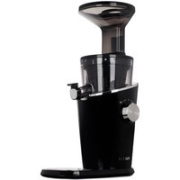 Вертикальная соковыжималка Hurom H-100 – новинка 2018 года. В отжимной корзине полностью отсутствует какой-либо металл. Вместо классического комплекта из сетки и обтирателя - в отжимной корзине используется набор из двух решеток, вставляющихся друг в друга. Форма отверстия для прохождения сока представляет собой вытянутые по вертикали арки. Благодаря такой форме, в сок попадает минимальной количество жмыха, а мойка аппарата после использования занимает меньше минуты и в большинстве случаев не требует применения щеток для чистки. Данная соковыжималка предназначена только для отжима соков и приготовления сорбетов из замороженных фруктов. Приготовление орехового молочка или пасты с ее помощью невозможно. В комплекте к соковыжималке есть две решетки - для отжима соков с мякотью и без. Сорбеты готовятся с помощью насадки для измельчения, которая устанавливается вместо обеих решеток. Двигатель имеет мощность 150 Вт, в комплекте книга рецептов на русском языке, краткие памятки по сокам и работе с аппаратом, толкатель и щеточка для очистки. На задней части корпуса аппарата размещен QR-код, с помощью которого можно проверить оригинальность соковыжималки.