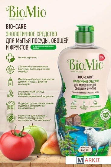 Markit » Средства для посудомоечных машин » Средство для мытья посуды BioMio Bio-Care Мята 450 мл