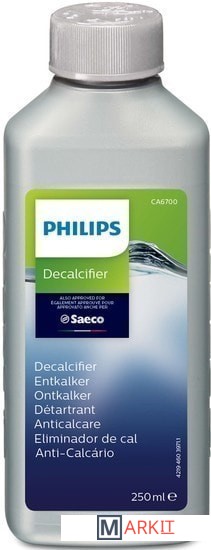 Средство для очистки от накипи Philips промывает все контуры подачи воды в кофемашине.В воде, которая проходит через кофемашину, всегда содержится известковый осадок. Специальное средство для очистки от накипи помогает защитить прибор от образования известкового налета, который ухудшает вкус и аромат кофе. Это эффективный, безопасный и простой способ очистки.