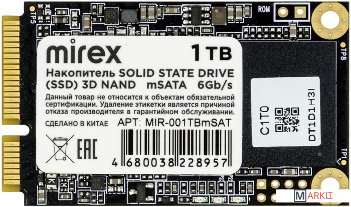 Энергонезависимое запоминающее устройство Solid State Drive Mirex mSATA позволяет обеспечить компьютерную систему основной или дополнительной памятью. Подключается к стационарному ПК или ноутбуку через соответствующий слот с поддержкой интерфейса mSATA (mini-SATA). Форм-фактор – 2242 (22 х 42 мм).Накопитель использует усовершенствованный контроллер и технологию памяти 3D NAND. Обладает высоким уровнем производительности: скорость чтения данных достигает 530 МБ/с, записи – 450 МБ/с. Время наработки на отказ (MTBF) – 1,5 миллионов часов. Значительно повышает скорость работы системы, обеспечивая более высокую скорость запуска, загрузки и передачи данных.Создан с использованием передовой технологии NANDXtend™ECC для рационального использования ячеек памяти и увеличения срока службы накопителя. Поддерживает технологии TRIM, S.M.A.R.Tmonitor и NCQ, что значительно повышает производительность и стабильность передачи данных.