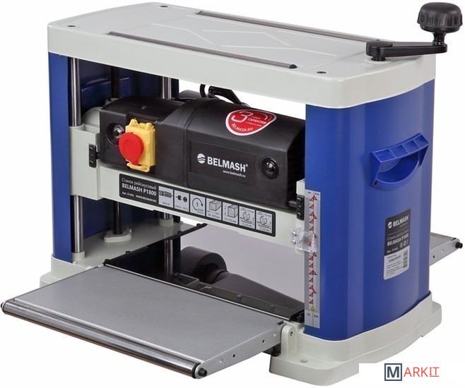 | Комплект поставки | - Станок рейсмусовый;- Ручка в сборе;- Шайба плоская;- Болт;- Ключ шестигранный;- Кожух стружковыброса;- Винт-барашек 2шт;- Переходник/адаптер;- Магнит 2шт;- Нож строгальный 2шт;- Руководство по эксплуатации;- Упаковка. |