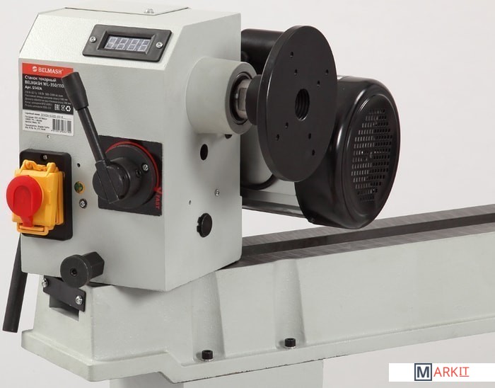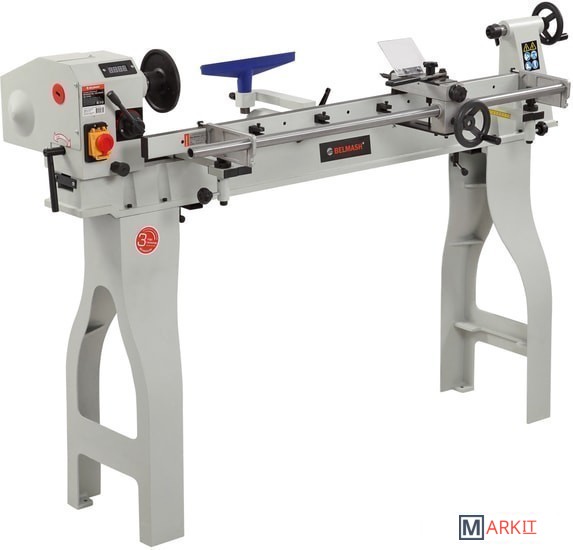 Станок применяется для обработки древесины c целью придания ей необходимых форм и размеров методом точения. На станке выполняют черновое и чистовое точение цилиндрических, конических, фасонных поверхностей и т. п.Заготовка получает вращение от шпинделя, скорость регулируется с помощью вариатора в диапазоне от 500 до 2000 об/мин.Станина, подручник и опоры изделия выполнены из высококачественного чугуна. Направляющие шлифуются с высокой точностью для обеспечения плавного хода подручника, передней и задней бабки.Передняя бабка имеет несколько фиксированных положений - 0, 60, 90, 120, 180 градусов, что позволяет выполнять точение заготовок диаметром свыше 350 мм.