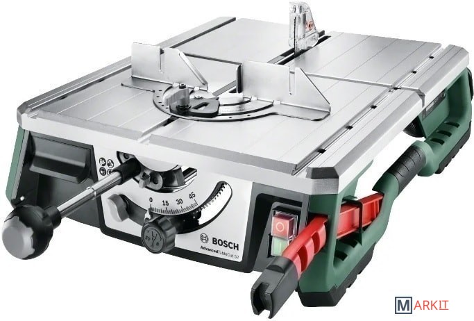 Многофункциональная стационарная пила Bosch AdvancedTableCut 52 0603B12000 предназначен для прямолинейной, продольной и поперечной распиловки деревянных заготовок. Инструмент используют во время ремонтных и строительных работ для ровного настила полов.Мощность модели рассчитана для пиления твердой и мягкой древесины, стружечных и древесноволокнистых плит.Настройка вертикальных углов распила возможна в диапазоне 0º-45º, горизонтальных углов - от 60º (слева) до 60º (справа). Регулировку производят при помощи специального тянущего рычага и поворотной ручки.