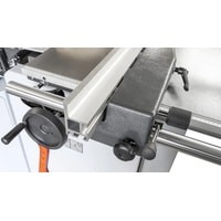 Большая профессиональная алюминиевая анодированная роликовая каретка с телескопической линейкой, идеально подходящей для обработки больших заготовок, а также для пиления больших тяжелых листовОткидное вытяжное устройство в форме параллелограмма с полым широким вытяжным кожухомПодрезная пила с собственным электродвигателемПульт управления находится на передней панели станкаПлавная и точная регулировка высоты пильного диска и угла маховикомАналоговый индикатор для считывания наклона пильного дискаТяжелая и прочная станина станкаБольшая собственная масса гарантирует точную обработку тяжёлых заготовокПрочный выдвижной телескопический упор на консоли с 2 откидными упорами.