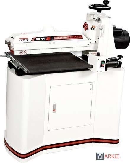 Jet 22-44 OSC осциллирующий барабанно-шлифовальный станок с автоматической подачей заготовки на транспортерной ленте. Основное назначение – шлифование и калибрование изделий из древесины. Модель поставляется в комплекте с тумбой-подставкой, оборудованной колесами и тормозом. Жёсткая конструкция с чугунными основанием и кронштейном крепления консоли обеспечивает высокую точность и повторяемость, что особенно важно в условиях поточного производства. Поскольку вал закреплен с одной стороны, можно шлифовать широкие детали в два прохода с поворотом.