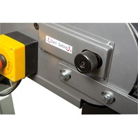 Ленточный шлифовальный станок JBSM-75 производства компании JET рассчитан на завершающую обработку заготовок. С его помощью можно снять заусенцы, отшлифовать сварные швы, а также придать детали требуемую шероховатость. Он будет востребован на небольших металлообрабатывающих производствах, автосервисах, частных ремонтных мастерских. Максимальная ширина шлифования на этом станке - 75 мм (по ширине шлифовальной ленты), длинна - 500 мм. Чтобы лента не проскальзывала при нагрузке на нее, ролики станка прорезинены. Скорость движения ленты оптимально подобрана и составляет 29 м/сек. Поскольку данная модель ориентирована на небольшие производства, привод JBSM-75 рассчитан на работу от сети 220В и может быть подключен к обычной бытовой розетке. Для удобства работы и расширения сфер применения станка инженеры JET применили оригинальное техническое решение: угол наклона рамы можно изменять в пределах от - 10 до +30°. Изделие оснащено несколькими устройствами безопасности. Наиболее опасная зона над ведомым роликом защищена специальным прозрачным экраном. Когда нет необходимости в шлифовке длинномерных заготовок верхнюю часть ленты можно закрыть крышкой. Предусмотрена кнопка аварийного отключения питания, расположенная в легкодоступном месте. Станок имеет собственное устройство пыле- и стружкоотведения с диаметром вытяжки 97 мм, также предусмотрено подключение внешнего стружкопылесоса (промышленного пылесоса), диаметр парубка -100 мм. Чтобы обеспечить максимальную устойчивость конструктив JBSM-75 установлен на прочную жесткую станину с широким основанием, которое, в свою очередь, фиксируется к полу при помощи винтов. Такое решение позволяет свести к минимуму уровень вибраций, возникающих при работе. Станок поставляется полностью готовым к работе, в комплект поставки входит даже шлифовальная лента с наиболее востребованным классом зернистости 60. В качестве опций производитель предлагает карандаш для очистки ленты, гибкие рукава для подключения стружкоотсоса.