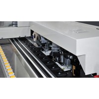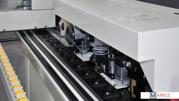 Кромкооблицовочный станок с клеевой ванной предназначен для облицовки прямолинейных панелей в режиме автоматической подачи. Клей можно наносить как на деревянные, так и на пластиковые кромки, облицовочная лента в катушках может достигать толщины 3 мм, в полосах – 4 мм. Станок оснащен автоматической передней и задней системами подрезки кромок заподлицо и полировки с обеих сторон заготовки.