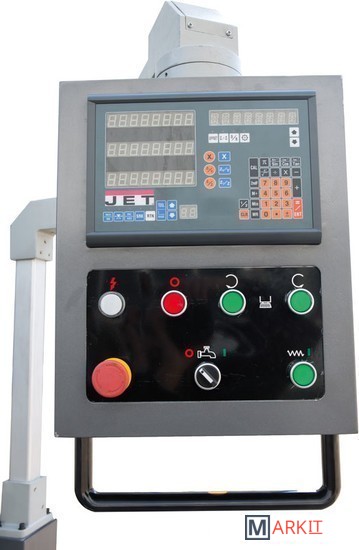 JVM-836TSDRO - универсальный вертикально-фрезерный станок производства компании JET. Он предназначен для фрезерной обработки деталей из различных сортов стали, сплавов, черных, цветных металлов и других материалов. Станок найдет свое применение на небольших предприятиях, в мастерских, исследовательских институтах и т.д. Основной конструктив JVM-836TS DRO изготавливается на Тайвани, мировом лидере производства обрабатывающего оборудования. Главное отличие данной модели от JVM-836TS - наличие Устройства цифровой индикации (цифровой линейки), что повышает точность, скорость и удобство работы. Станок рассчитан на подключение к сети 380 В и оснащается производительным электродвигателем с выходной мощностью 2,2 кВт (потребляемая мощность 4,2 кВт). Частота вращения шпинделя может выбираться из диапазона 65 - 4550 об/мин. Максимальный диаметр фрезерования и сверления у данной модели составляет 20 мм с ручной подачей и 16 мм с автоматической. Автоподача предусмотрена только по оси Х. Максимальный диаметр торцевой резьбы - 100 мм, концевой 20 мм. Расстояние шпиндель-стол у JVM-836TS DRO - 50-356 мм, шпиндель-стойка - 133-400 мм, размер стола составляет 905 х 200 мм. Максимальный вес обрабатываемой детали - 250 кг. Для удобства эксплуатации и расширения возможностей данной модели фрезерная головка имеет механизм поворота вправо/влево на 90 градусов. Также реализована возможность переключения правого и левого направления вращения, а также механический тормоз. Направляющие JVM-836TS DRO проходят фирменную закалку JET, шлифуются по самым передовым технологиям. В комплекте со станком поставляется система СОЖ.