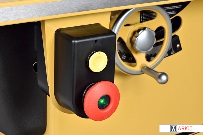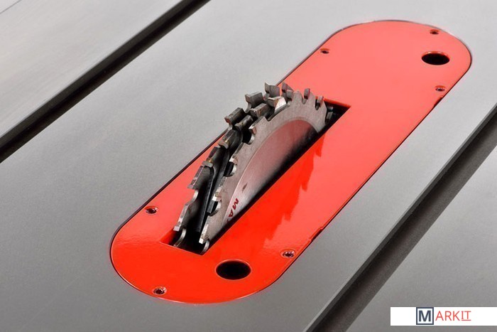 PM1000 способен кроме распиловки выполнять еще и некоторые задачи по фрезерованию: специальная конструкция шпинделя, зажимных фланцев и сменные вставки пильного стола позволяют использовать в работе пазовальные диски Dado. Эта популярная оснастка значительно расширяет функционал пильного станка. Для повышения удобства смены режущего инструмента предусмотрен механизм блокировки шпинделя, редко встречающийся на других станках.
