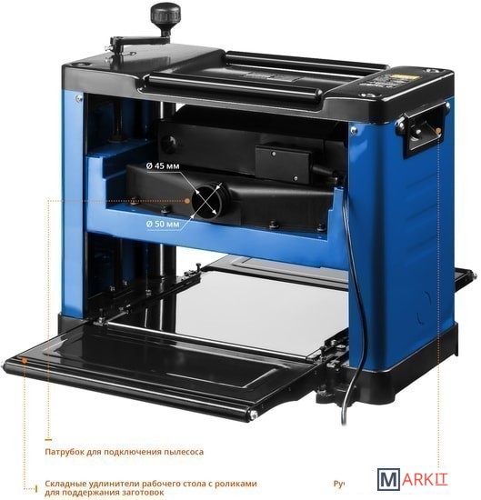 - Компактный переносной станок с возможностью обработки заготовок шириной до 305 мм;- Мощный двигатель с защитой от перегрузки;- Два ножа из быстрорежущей стали;- Удлинители стола с роликами облегчают подачу заготовки и поддерживают её на входе и выходе;- Ролики на верхней части станка упрощают возврат заготовки при необходимости повторного строгания;- Жесткая конструкция;- Идеально гладкая поверхность стола уменьшает трение при подаче заготовки;- Удобные ручки для переноски станка.
