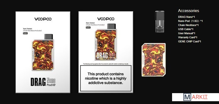 Комплектация DRAG Nano x1Nano Pod(1.8Ω)x1USB Cable x1User Manual x1Warranty Card x1Gene Chip Card x1